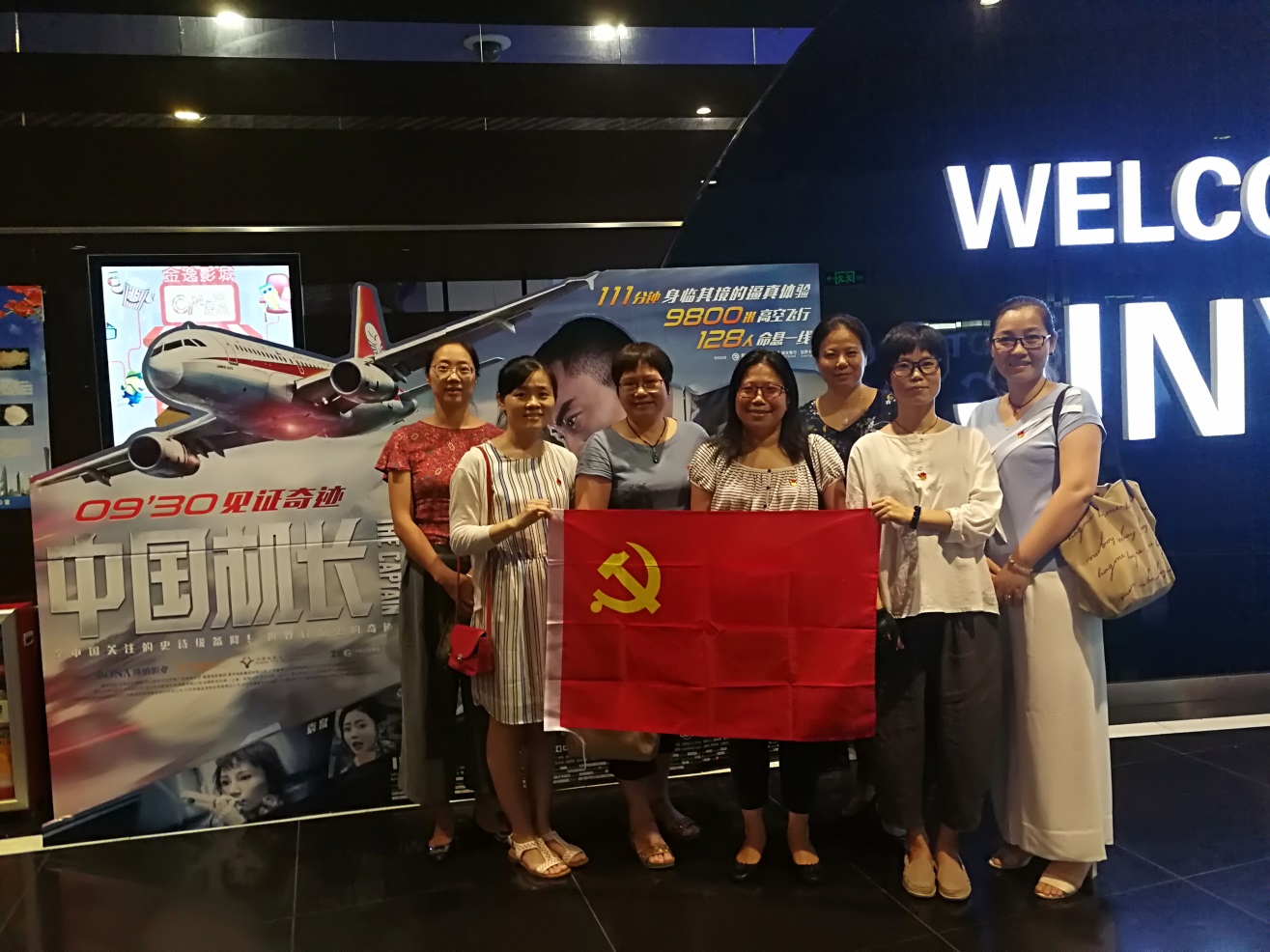 《中国机长》改编自2018年5月14日发生在四川航空的真实事件,飞机在青藏高原群山的万米高空中突发挡风玻璃碎裂,在面临强风、低温、座舱释压的多重考验下,四川8633的全体机组人员临危不乱,坚守对职责的敬畏,对生命的敬畏,凭借自己日复一日训练出的过硬专业素养,将全体119名乘客和9名机组人员安全带回地面,成就了世界航空史上的奇迹。电影片尾曲响起时,支部同志都依然沉浸其中,大家都被这些平凡而又伟大的英雄所触动。