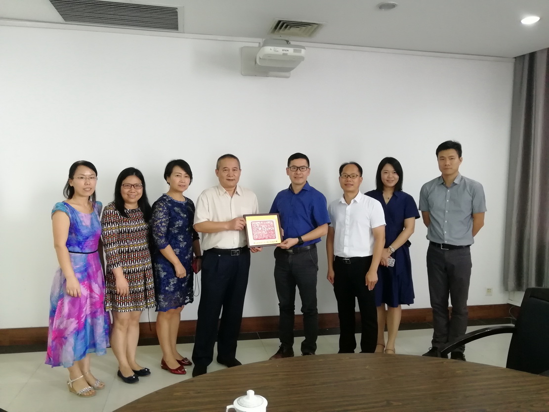 2018年7月9日上午,南海区九江镇人民政府副镇长梁觉聪、南海区九江镇人民政府党委委员卢明、九江镇招商统筹局副局长何荣坚和钟之灵一行拜访我校。我校科研与技术服务处处长胡智华、科研与技术服务处副处长黄晓红、轻化工技术学院副院长云娜、轻化工技术学院郭纬教授和王宝玉教授在实训中心906接待了各位来宾。