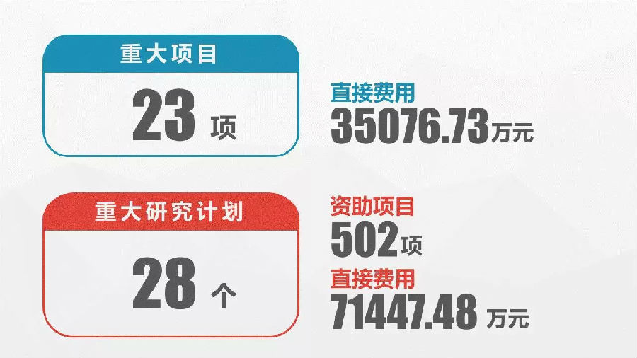 资助重大项目23项,直接费用35076.73万元。科学实施28个重大研究计划,资助项目502项,直接费用71447.48万元。