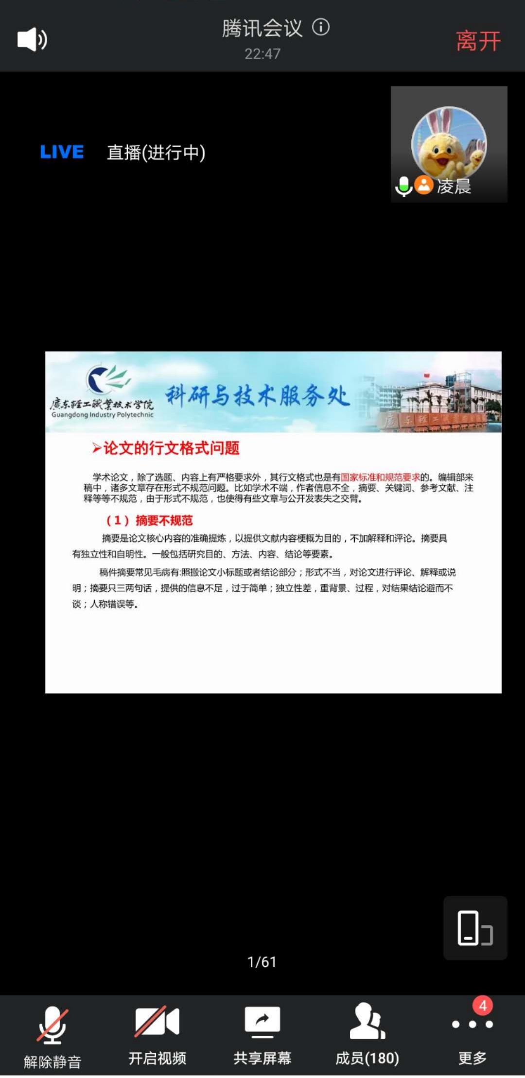 为提高我校教职工科研项目申报的成功率,推进科技成果转化和提升学术论文撰写的水平与能力,科技处于2020年6月30日至7月3日组织开展了科研与技术服务系列专题培训讲座。此次的培训分为四场,在每天上午10点到11点借助腾讯会议平台开展,由科技处郑小燕、叶惠玲、王丽婷、肖吉四位老师分别围绕科技类纵向项目、社科类纵向项目、知识产权、学术论文发表、校级项目与横向项目的申报、管理、办理流程等方面内容进行了详细生动的讲解。每场培训都有超过200位教师参加。