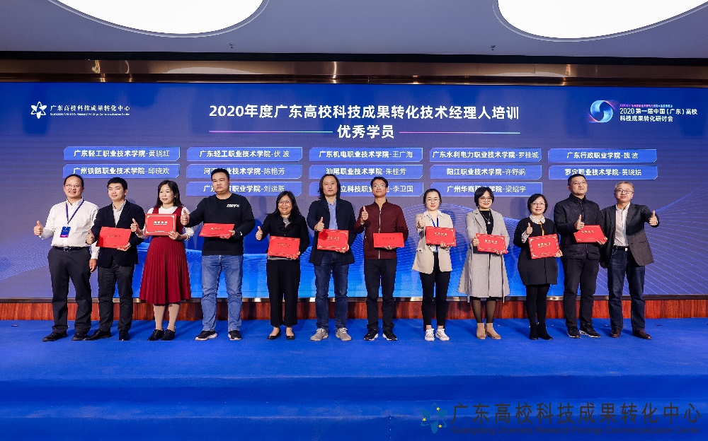 2020年我校派出科研管理人员、科研与技术服务骨干教师先后共96人次参加了由广东高校科技成果转化中心主办的2020年广东高校技术经纪人培训,分别有2人获高级证书、7人获中级证书、21人获初级证书。我校荣获优秀组织奖,黄晓红、伏波老师获得优秀学员称号。